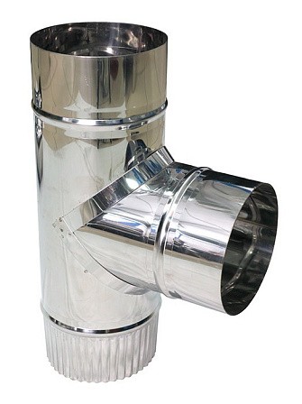 Используется для соединения наклонного дополнительного участка дымового канала с основным вертикальным. Подключение "по конденсату". Толщина стали 0,5 и 0,8 мм.