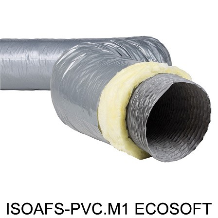 ISOAFS-PVC.M1 ECOSOFT представляют собой гибкие теплоизолированные армированные гибкие воздуховоды , выполненные из слоев ПВХ (воздуховод гибкий ПВХ), усиленные стальной пружинной проволокой с высокой жесткостью, покрытые изоляцией из стекловолокна и полиэтиленового паронепроницаемого слоя.