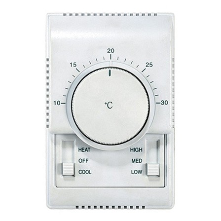 Регулирует скорость вращения вентилятором, открывает клапан с электроприводом и включает вентилятор на установленной скорости при падении температуры в помещении ниже заданной.