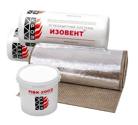 Изовент® - комбинированное огнезащитное покрытие на основе базальтового рулонного материала, кашированного алюминиевой фольгой, и клеевого состава ПВК-2002.