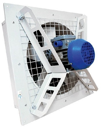 Осевой вентилятор состоит из монтажной сетки, на которую закреплено рабочее колесо изготовленное из композитных материалов и электродвигатель, а также из рамки с жалюзи, которая закрывает вентилятор с внешней стороны помещения. Рабочее колесо защищено решеткой.